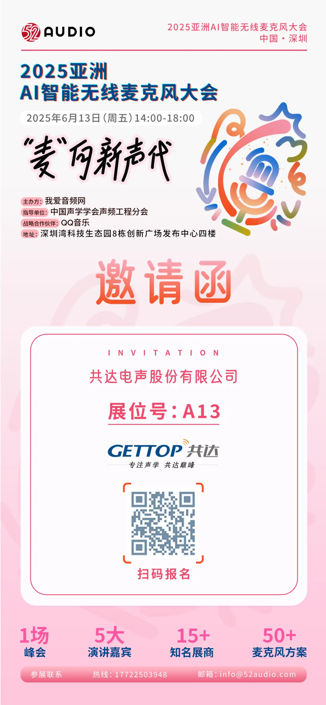 2025亚洲AI智能无线麦克风大会将于6月13日盛大举行。。。。。。作为行业最具影响力的盛会之一,,,, ,本次大会将汇聚全球顶尖音频手艺专家和工业链上下游企业。。。。。。届时,,,, ,九州ku游官网电声将携数款最新研发的新产品参展,,,, ,现真挚约请莅临展会现场考察、指导!